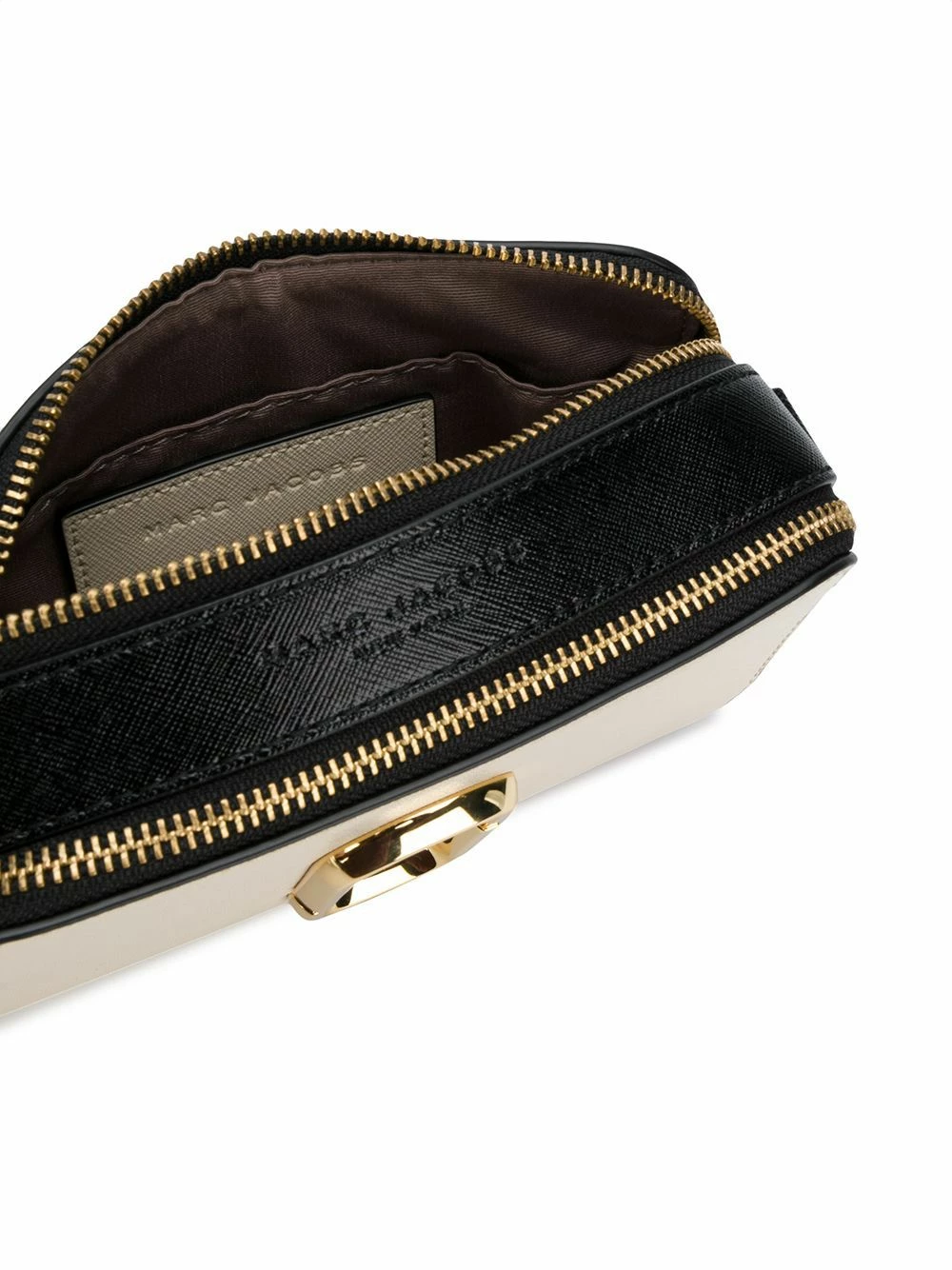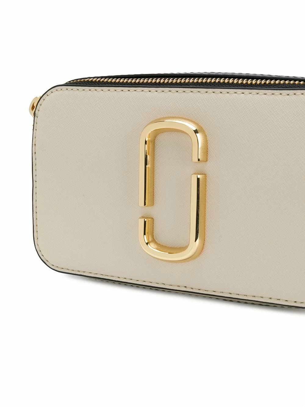 Petit sac à bandoulière The Snapshot en cuir Marc Jacobs avec bride portée épaule détachable et ajustable, finitions dorées, poche intérieure plaquée et patch logo intérieur.