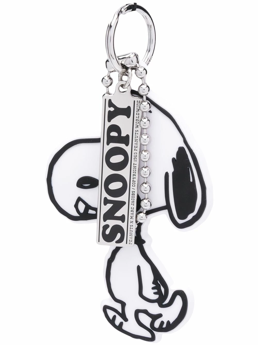 Porte-clés Snoopy Marc Jacobs avec anneau de fermeture et détails argentés.