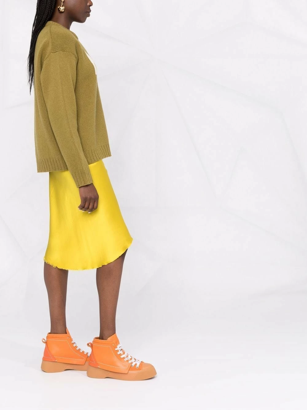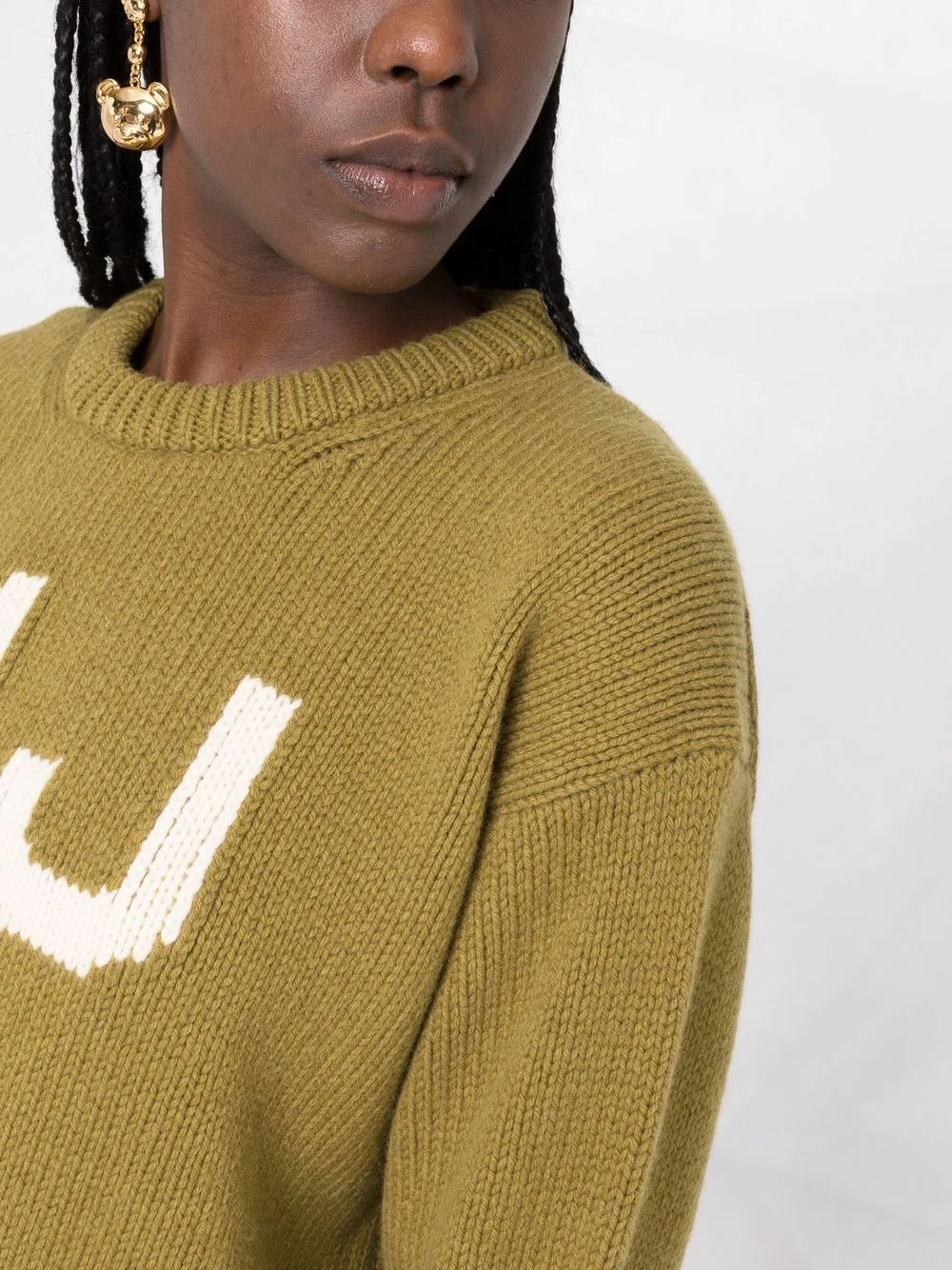 Encolure ronde, logo imprimé sur le devant, manches longues, ourlet nervuré. Couleur : vert. Matière : laine.