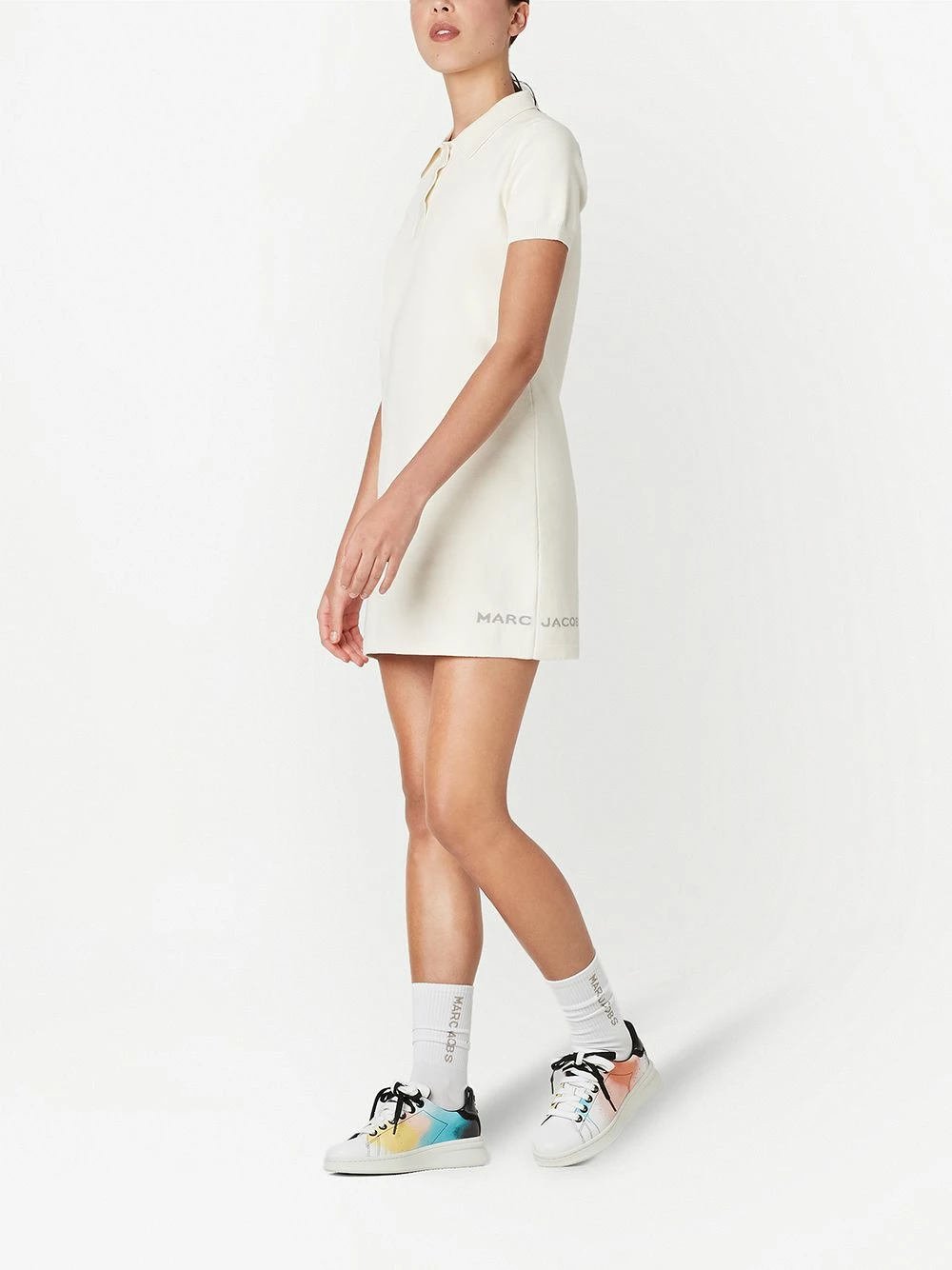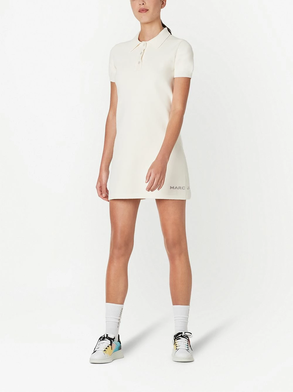 Logo imprimé sur le côté, fines nervures, col polo, manches courtes. Matière : coton.