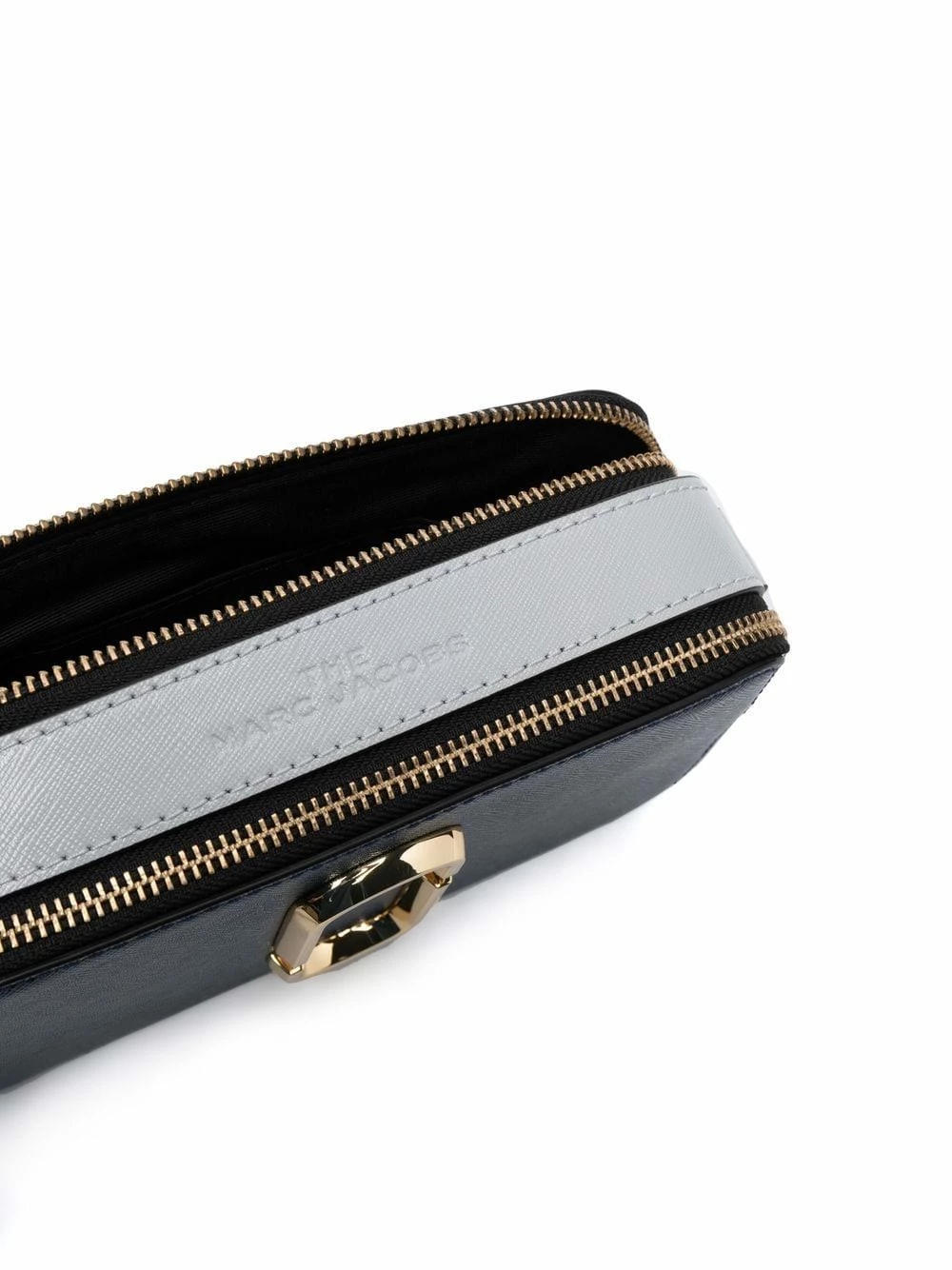 Plaque logo, finitions en métal doré, fermeture zippée sur le dessus, compartiment principal, bride porté épaule détachable et ajustable, finition à bande logo. Couleur : bleu. Matière : cuir.