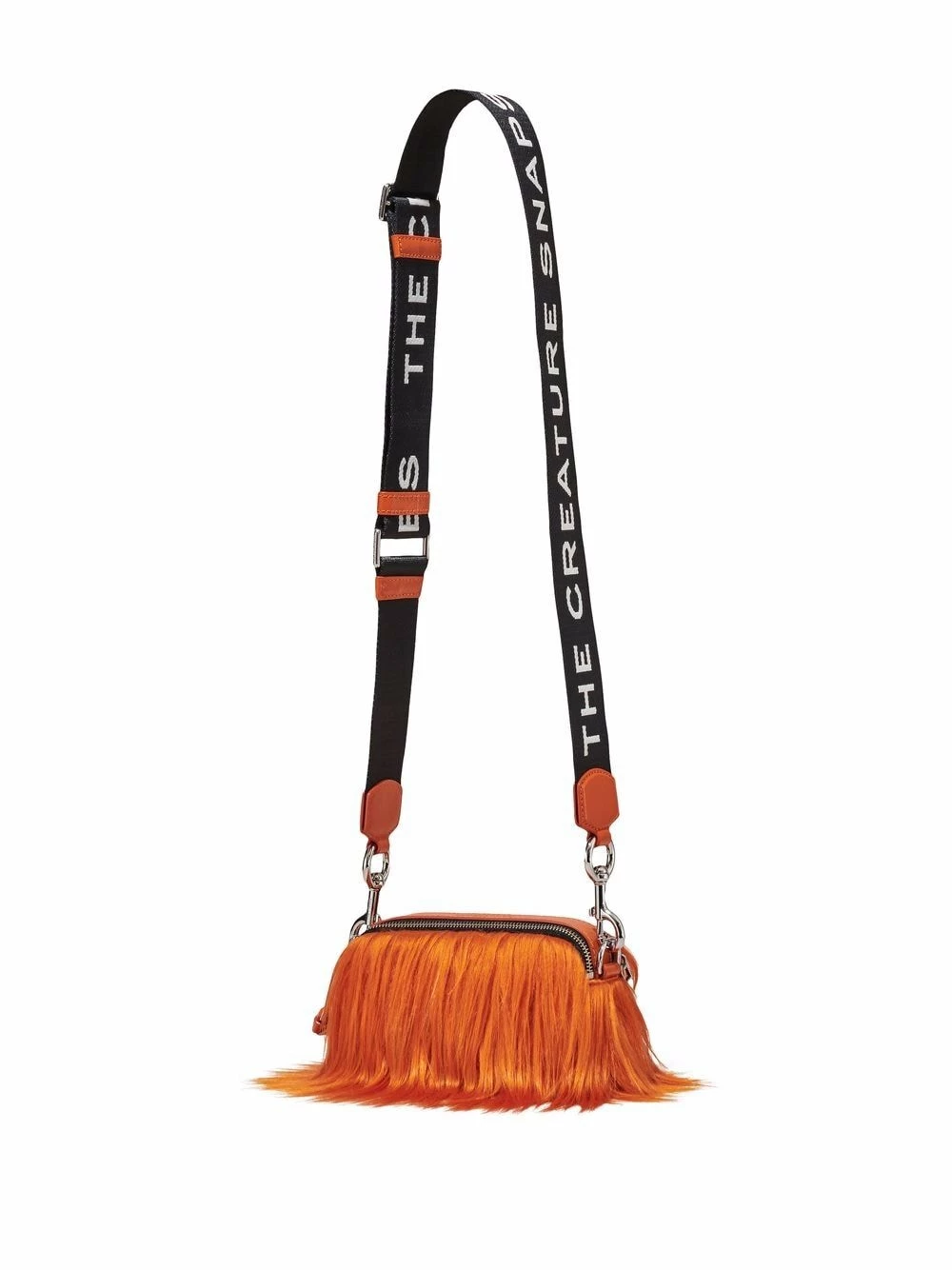 Plaque logo dorée, détails en fourrure artificielle, bride porté épaule détachable et ajustable. Couleur : orange.
