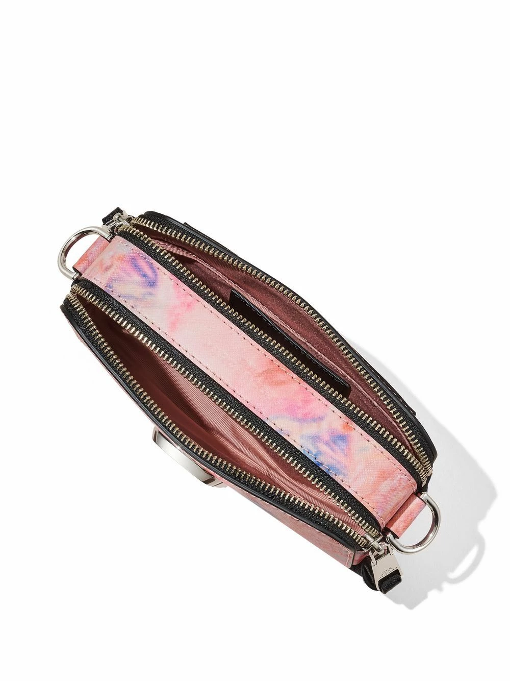 Plaque logo, effet aquarelle, fermeture zippée sur le dessus, compartiment intérieur, bride porté épaule détachable et ajustable. Couleur : rose. Matière : cuir.