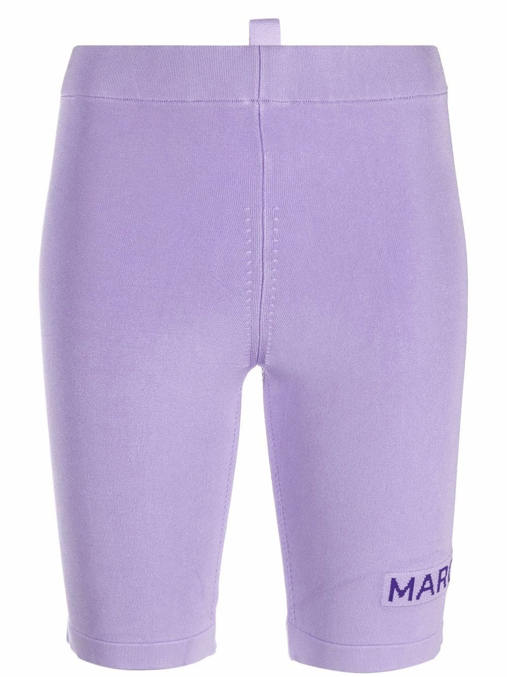 Design en maille, construction stretch, logo intarsia, coupe courte, taille haute.